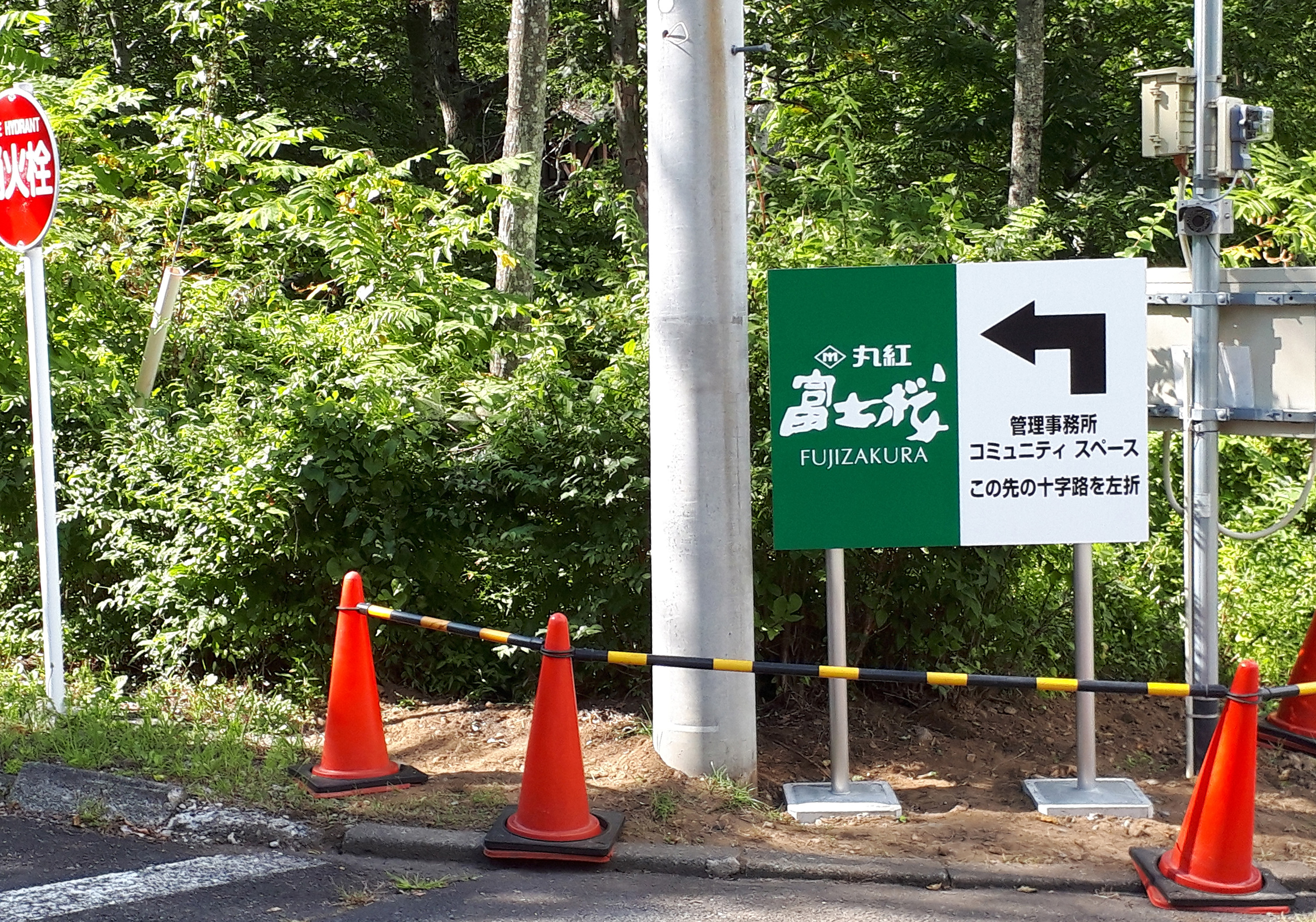 丸紅富士桜別荘地は、富士レイクサイドゴルフ場側にその出入り口があります、自動車の出入り可能なゲートは1か所のみですのでご注意ください。